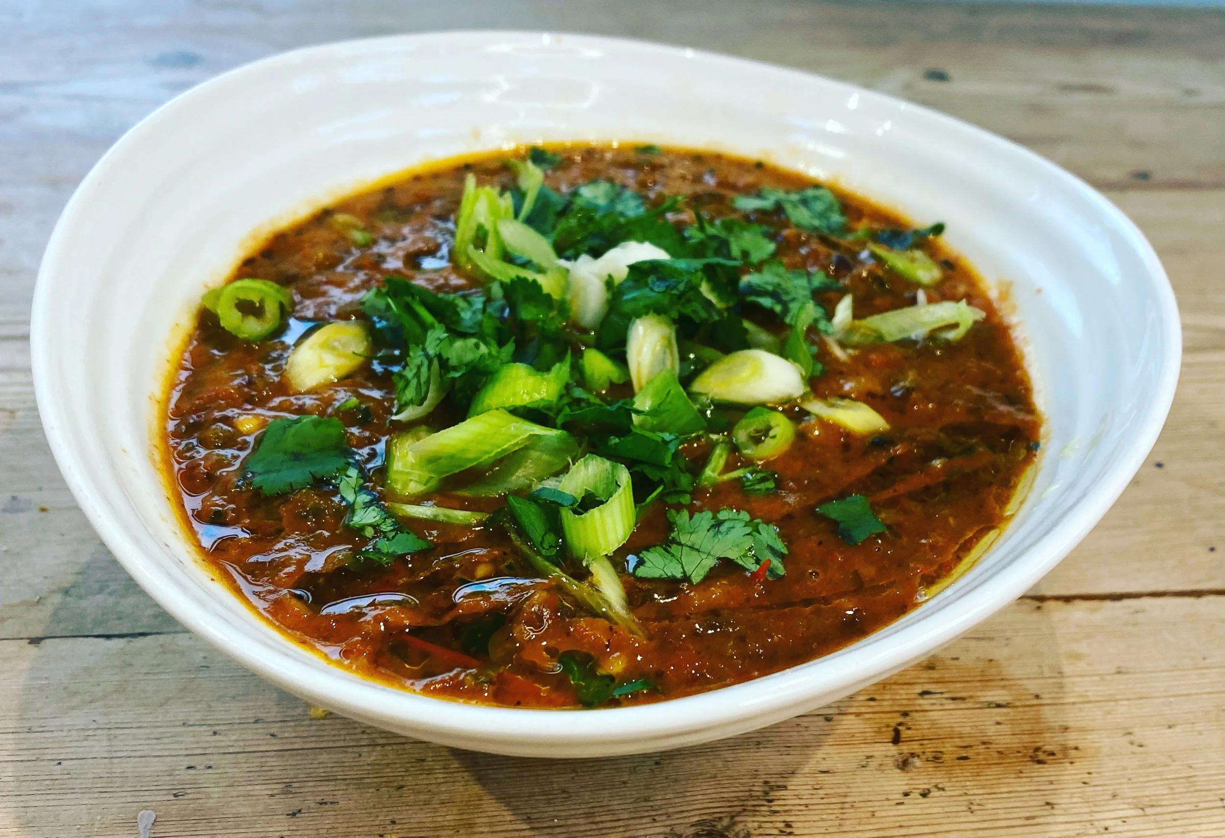 I absolutely love soup. It’s such a brilliant way of getting a great mix of vegetables in whilst also mixing it up with the flavours. This is such a delicious recipe - don’t be put off by the longer cooking time - it can largely be left on its own but it’s worth it because it is so tasty and hearty and perfect for those colder days. Also if you have a cold it’s brilliant as it’s got a bit of a kick.